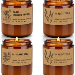 Candles for Home Scented, 4 Pack 28 Oz Candles Gifts for Women, Large Soy Scented Candles, Lavender Fresh Rose Long Lasting Aromatherapy Amber Candle Set for Women Men Christmas Birthday Thanksgiving